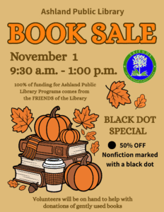 The Friends are always looking for more people to help with our events and activities. If you would like to learn more about our group, you can drop in on one of our monthly meetings or email the President of the Friends of the Ashland Library.